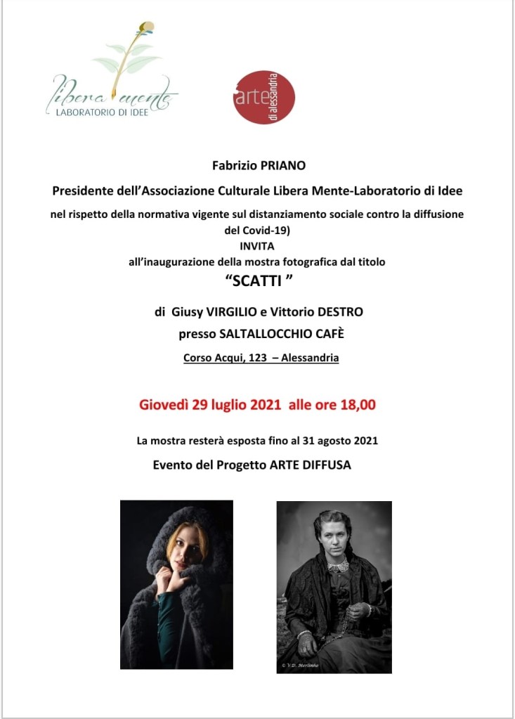“ Riprendiamo gli appuntamenti del Progetto ARTE DIFFUSA, eventi dedicati all’Arte presso alcuni locali della nostra Città, dopo il periodo di lockdown, con una mostra fotografica dedicata a Giusy VIRGILIO e Vittorio DESTRO. Una coppia nella vita nonché una coppia artistica accomunata dalla passione per la fotografia. Questa mostra non segue un tema specifico ma vede esposti alcuni scatti fotografici fatti in momenti diversi e con soggetti diversi! Un’opera di ciascuno è altresi esposta nel negozio di merceria LA CASTELLANA, adiacente il Saltallocchio Café che ospita la mostra ”