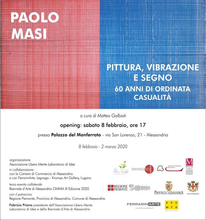 La terza mostra del percorso della Biennale d’Arte di Alessandria e’ stata una personale di Paolo Masi, dal titolo “Pittura, vibrazione e segno. 60 anni di ordinata casualità”.