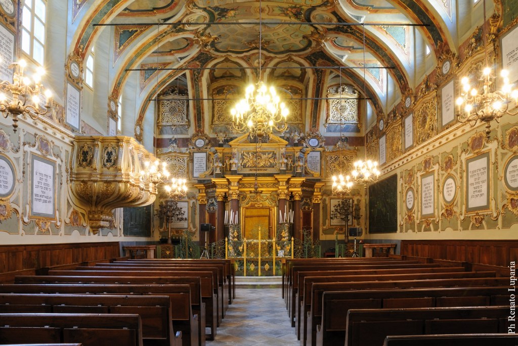 Altrettanto importante è il complesso museale ebraico; nascosta dietro una anonima facciata di vicolo Olper, nel centro della città, la Sinagoga costruita nel 1595, dopo vari interventi e restauri, si presenta con tutto il suo splendore d’ arte tardo-barocca, celebre in tutta Europa. Le decorazioni in oro, gli stucchi e le iscrizioni in ebraico testimoniano la lunga vita della comunità casalese che, prima dell’ ultima guerra mondiale era la più notevole in Italia.