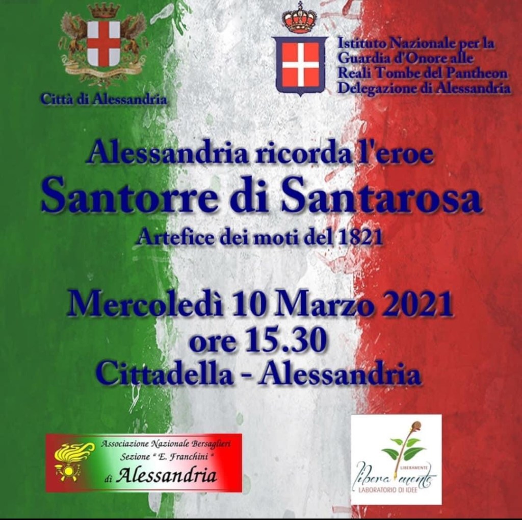 10 marzo 2021 In ricordo del primo tricolore issato 200 anni fa presso la Cittadella di Alessandria . Iniziativa promossa dalla Delegazione di Alessandria dell’Istituto Nazionale per la Guardia d’Onore alle Reali Tombe del Pantheon, in collaborazione con l’Associazione Culturale Libera Mente-Laboratorio di idee e la Sezione “E. Franchini” di Alessandria dell’Associazione Nazionale Bersaglieri.