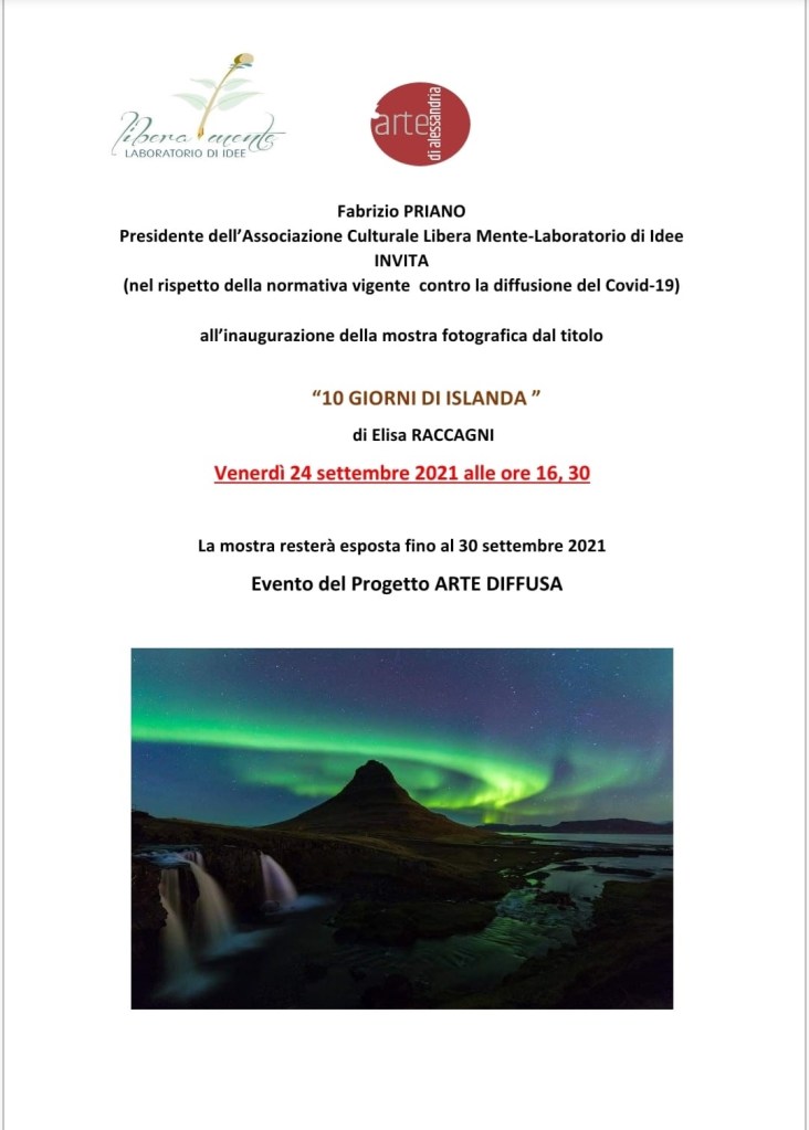 “Con la mostra dedicata alla fotografa Elisa RACCAGNI , riprendono gli appuntamenti del Progetto ARTE DIFFUSA, eventi dedicati all’Arte presso alcuni locali della nostra Città. Elisa RACCAGNI espone alcuni scatti che ci portano in Islanda, permettendoci di vedere paesaggi e vivere atmosfere uniche comodamente seduti al bar mentre gustiamo il nostro caffè. L’esempio migliore di quello che è lo spiritose progetto di Arte Diffusa ”.